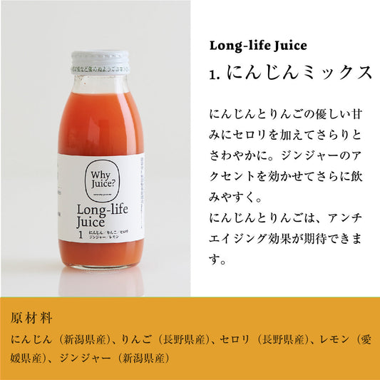 【無添加ジュース】Long-life Juice ご自宅向けお得20本セット(にんじん、みかん、トマト、ビーツ)