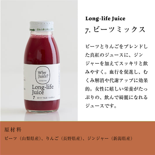 【無添加ジュース】Long-life Juice ご自宅向けお得20本セット(にんじん、みかん、トマト、ビーツ)